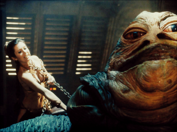 莱娅参与了卢克从卑鄙的强盗那里解救被俘的汉的计划。她假扮成波士,一个尤贝斯族赏金猎人,渗透进贾巴的宫殿,将索罗从他的碳质禁锢中解救出来。她的身份败露了,她一度不得不忍受成为贾巴的奴隶的羞辱。但无论如何,她用锁住自己的锁链勒死了这个赫特人,报复了这个强盗。