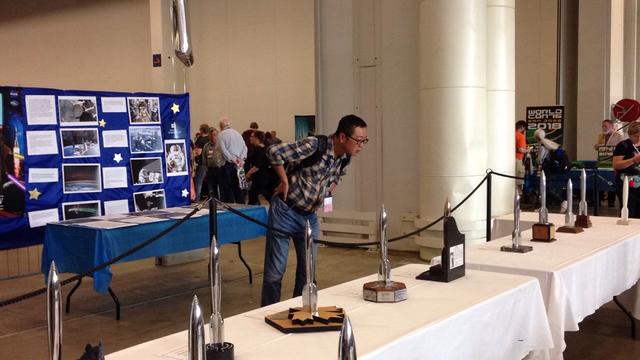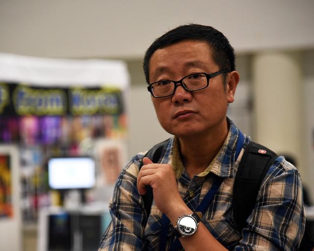 作家刘慈欣在世界科幻大会展场。科幻世界志愿者莫为优 摄