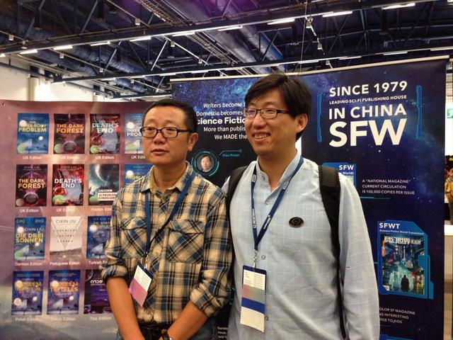 刘慈欣和《科幻世界》图书部主任古火拉兹。科幻世界志愿者黄征 摄