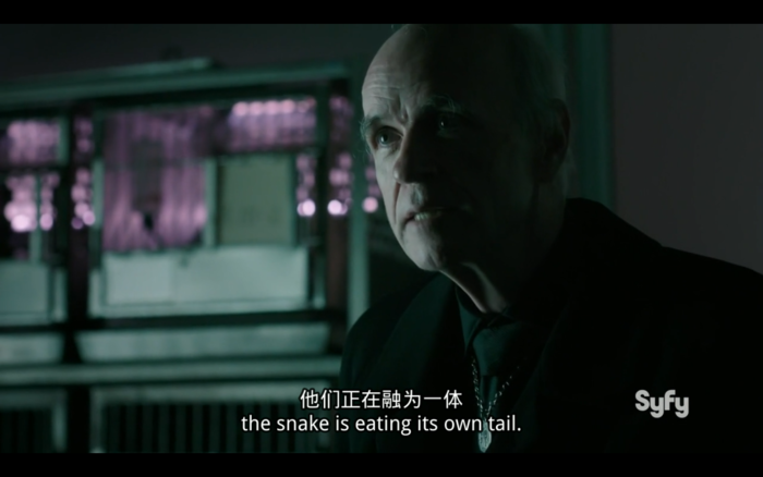 时间旅行或许更为适合阐述永劫回归对科幻作品的影响,但是做到极佳的诠释未必容易,因此这一类作品往往会落入俗套。《12只猴子》(12 Monkeys)以及《环形使者》(Looper)在故事性上较为优秀,在暗示循环的细节设定上却有些薄弱。罗伯特·海因莱茵(Robert Heinlein)的《你们这些回魂尸》(All You Zombies)讲述的“我在时间循环中成就了我”的故事,可能非常接近永劫回归和选择无意义论。在一系列的选择中,变性前后的时间特工“我”在不同角色中转换,既是未婚受孕的母亲,亦是写忏悔故事的男子和孩子的父亲,甚至是那个出现在孤儿院中的孩子,“我”皆是“我”,我陷入循环,成为循环中的凸起部分。小说结束这样写道:“蛇吞吃了它自己的尾巴,周而复始,何谓始,何谓终……我知道我是从什么地方来的了——可是你们是从什么地方来的呢,你们这些回魂尸?”海因莱茵在这里借 “咬尾蛇”道出时间旅行中的永劫回归观,命定悖论、闭合类时曲线理论以及诺维科夫自洽性原则被运用其中。2014年的科幻电影《前目的地》(Predestination)就是改编自海因莱茵的这篇小说,不过额外加入了“闪弹人”的剧情作为另外一个循环。