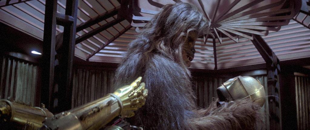 这段特别的情节值得一个荣誉奖,原因主要在于3PO。有个七零八落的机器人绑在背上,还时不时地抱怨几句,耐心差的人绝对无法忍受。然而,在3PO失踪后,却是丘巴卡主动去寻找这个礼仪机器人。他来到云城(Cloud City)深处,将机器人偷走,带到了汉和莱娅的面前。由于3PO的不幸遭遇,丘巴卡最先觉察到贝斯平(Bespin)弥漫着一种古怪的气息,而且提巴纳气体并不是问题所在。