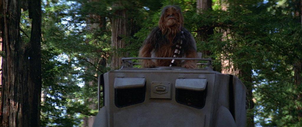 尽管丘巴卡的食欲给他惹来了始料未及的麻烦,但是如果没有丘巴卡的饥饿搭桥,起义军和伊沃克人(Ewok)也许根本不会结盟抗敌。作为弥补,丘巴卡在恩多战役(Battle of Endor)中表现惊人,其中有一次行动尤为亮眼:丘仔利用恩多的熟悉地形,从上空伏击一台AT-ST步行机,转而利用它对付周围帝国军,立刻干掉了无数敌人。
