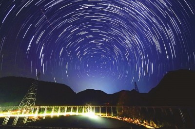 国家天文台FAST项目团队用延时摄影拍摄的“中国天眼”看到的璀璨星空。(资料图片)