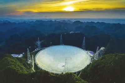 随着技术的进步,越来越多科幻场景正成为现实。图为世界最大口径射电望远镜“中国天眼”,它能接收137亿光年以外的电磁信号。(资料图片)