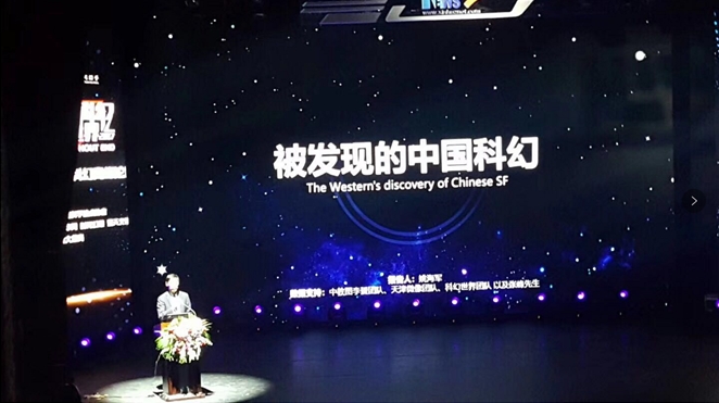 中国科幻走向世界的重要功臣、将《三体》推向世界的《科幻世界》杂志社副总编辑姚海军作了《被发现的中国科幻》的发言,讲述了中国科幻走向世界的历史。