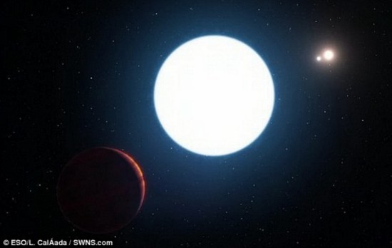在这个三恒星系统中,最亮的主恒星HD 131399A质量较太阳大80%,距离两个较暗的恒星B和C大约300个天文单位(1个天文单位为地球与太阳的平均距离)。B和C相距大约10个天文单位,这两个恒星相互环绕,像一个自己旋转的哑铃。研究人员在最新一期美国《科学》杂志上报告了观测成果。