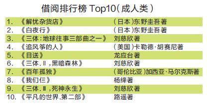 2017年,广州图书馆的外借文献量达1142.8万册次。该馆的读者最爱看什么书?近日,“2017年度广州图书馆借阅排行榜Top10(成人类)”发布,记者了解到,刘慈欣创作的系列长篇科幻小说《三体》三部曲(《三体:地球往事三部曲之一》《三体.Ⅱ,黑暗森林》和《三体.Ⅲ,死神永生》)占据了该榜前十位的三席。