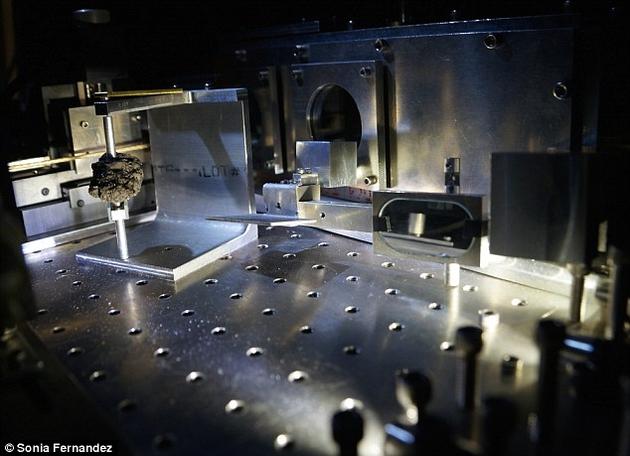 玄武岩被放在一个扭力天平上,使其在受到激光轰击时保持稳定。