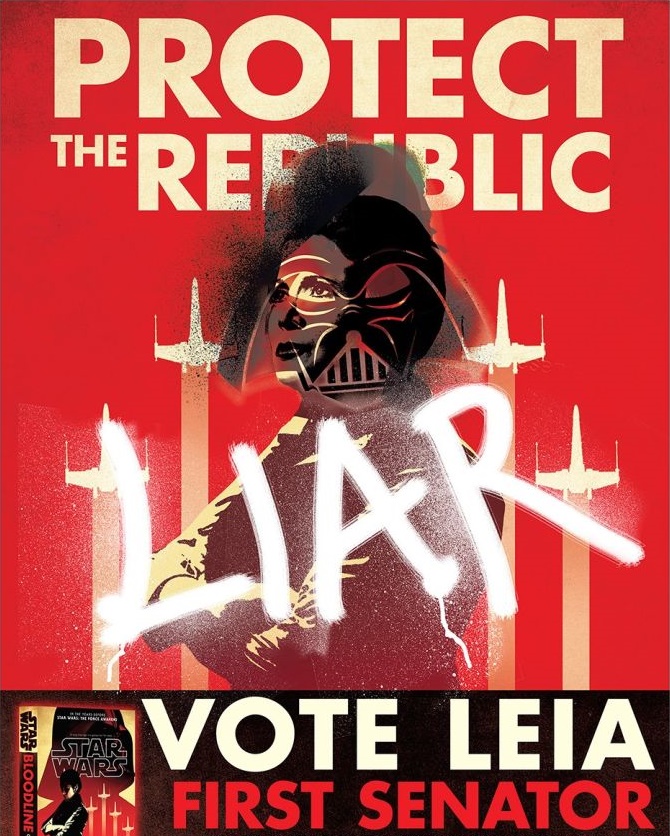 一时间,莱娅在议会众叛亲离,只有两位分权派议员——来自行星加塔伦塔的泰-林·加尔和来自行星洛内拉的瓦丽什·维克利——为她说话。而全国也是一片哗然,不过贾尔·阿克巴、尼恩·农布、兰多·卡瑞辛、蒙·莫思马等莱娅的老朋友纷纷表达了对莱娅的支持与同情。当晚,莱娅被迫向失联的儿子发送消息,告知这一隐瞒他多年的事实。第二天,莱娅向议会宣布退出第一议员的竞选。但卡丽斯·辛迪恩落井下石,进一步提出对同样失联的卢克·天行者有可能滥用原力的忧虑,幸好这番言论被泰-林化解。在莱娅看来,这段日子是继亲眼目睹奥德朗被毁后,她一生中最孤独的时刻。分权派后来提名泰-林为第一议员候选人。