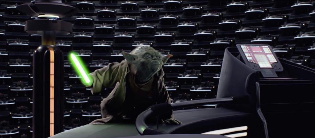 卢克尝试将他的X翼抬出达戈巴(Dagobah)的沼泽,但没能成功,随后告诉师父:“你的要求不可能达到。”听到这句话,尤达冷静地抬起了星际战斗机,而他的身高不及卢克的一半。卢克不由得说:“简直难以置信。”尤达却回答道:“所以你才会失败。”这是一个简单但迷人的时刻,尤达极力传达给学生的一切观点都在这一刻得到了强化。