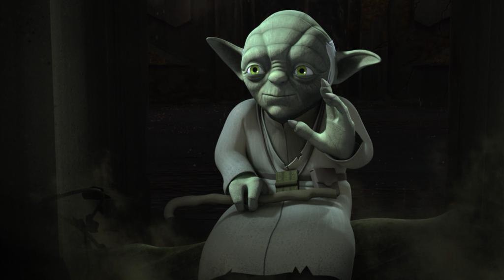 年轻的埃兹拉·布里杰(Ezra Bridger)来到洛塔(Lothal)的绝地圣殿,与身在达戈巴的尤达取得了联系。他某种意义上担当了这位学徒的导师,甚至送给他一枚光剑水晶。在他们第二次见面的尾声,圣殿随着帝国裁判官(Inquisitor)的到来而开始崩塌,埃兹拉、凯南·贾勒斯(Kanan Jarrus)和阿索卡·塔诺(Ahsoka Tano)必须赶快逃走。学徒时期,阿索卡因对绝地委员会(Jedi Council)失望而退出了绝地武士团。这时,她停留了片刻,回头望去,看到了尤达。二人并没有言语交流,但表情中充满了友爱、原谅和尊重。尤达轻轻挥手告别,一切尽在不言中。
