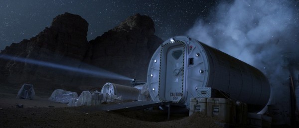 主角首先在火星上建立了临时维生的栖息场所the Hab,利用其掌握的科技维持生命。首先NASA公布了这个栖息场所所用到的科技,十分类似NASA建立的HERA(Human Exploration Research Analog,人类探索研究模拟项目),这个位于NASA约翰逊空间中心的场所旨在为国际空间站宇航员模拟太空任务所设,题图为影片中的Hab概念图,下图为HERA内部场景。
