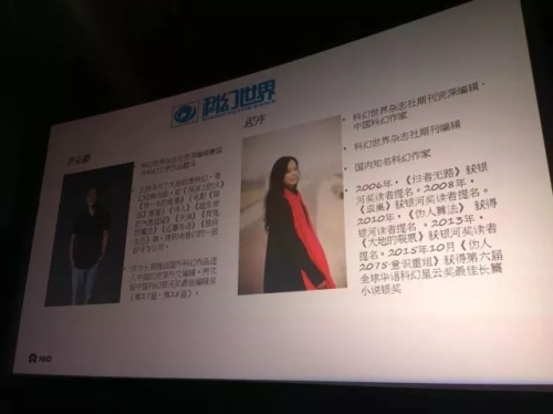 其实最初在蔚来汽车邀请我们来这个活动时,我心想:“你们是找错人了吧?我连车都不会开,你们请我到这来是要弄一个车祸现场啊?”但后来他们解释,蔚来汽车说的是一种为用户创造愉悦的生活方式,一个追求美好明天和蔚蓝天空的未来愿景;做的是环保的智能电动汽车。那这就和我们做科幻行业的大有联系。
