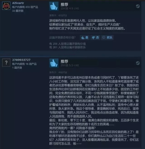 然而,这个开发团队本意旨在“拷问人性”,让国外玩家“面临道德抉择”的末世生存游戏,最近却被中国玩家玩成了“抓革命、促生产”一般的“生产大自救”。由于国内玩家不同于国外玩家的独特思路,令他们根本不着急去思考那些考验意志的所谓道德两难的“哲学问题”,而是想着“集中一切有生力量干大事”!