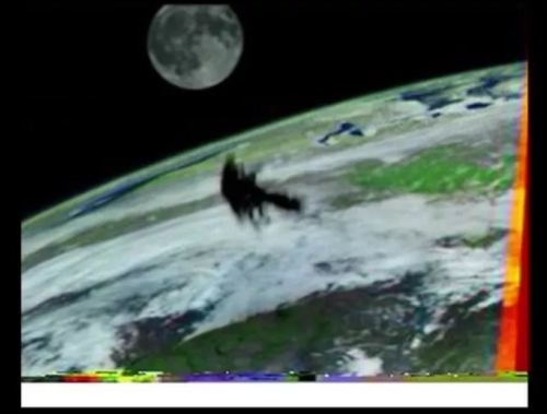 地球轨道上明显漂浮着一个黑色不明物体。