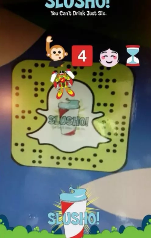 ▲ SLUSHO的官方Snap滤镜有“Ask 4 happy bot”隐喻的图样