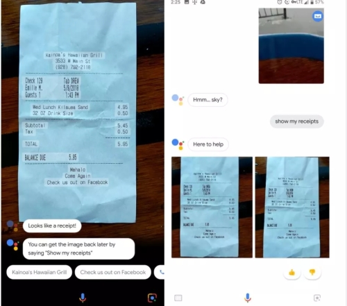 比如,通过镜头让谷歌助手识别一张购物收据,或让助手把收据先保存起来;当你想看的时候,随时随地用语音唤出助手,请TA帮你调出收据——就像真正的钢铁侠一样。