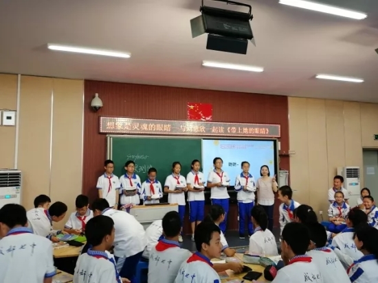 在如此自由的课堂上,同学们各抒己见,将《带上她的眼睛》读出了各自的理解和感悟。当宋老师以课文结尾“我离她都不会再远了”如何理解提问后,有两位同学起身说出了自己的看法。