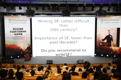 他在演讲中指出,科幻小说的第一目的更多是让人们有一种情感上的互动,其次则是让人们对科学更加感兴趣,读者通过科幻故事激发好奇心,也就对科学本身产生了兴趣。