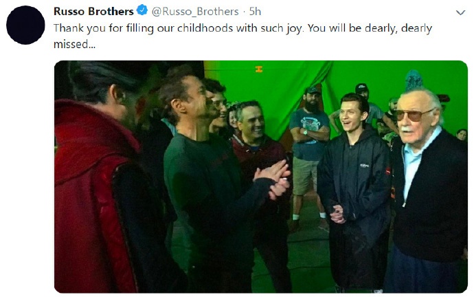 《复仇者联盟3》导演罗素兄弟发文:“感谢您使我们的童年充满了这么多欢乐,您会被我们深深地怀念。”