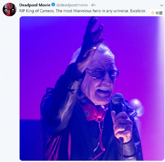 “死侍”瑞恩·雷诺兹说:“安息吧!客串之王,任何宇宙中你都是最伟大的超级英雄,Excelsior!”