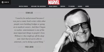 漫威官网引用了一段斯坦·李曾说过的话,来缅怀这位漫画巨人: