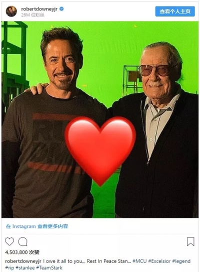 ▲ 大银幕“钢铁侠”小罗伯特·唐尼在推特上缅怀斯坦·李