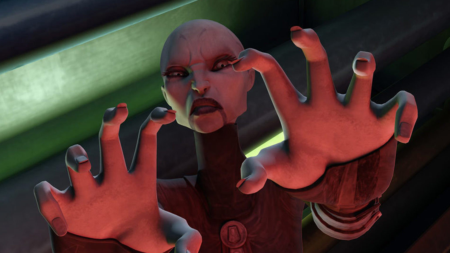 说到暗夜姐妹,不能不提起她们最知名的刺客,堕落的绝地阿萨吉·文崔斯。尖刻的面孔、冰冷的双眼、更加冰冷的仪态,使得任何人挡在她面前时都必须三思后行。她手持两把血红色光剑,与自己出身的暗夜姐妹和新的赏金猎人同伴都保持距离,这使得她将自身的恐怖感提升到了一个独有的境地。