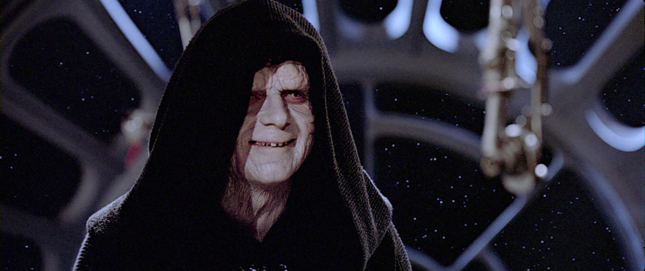 刺耳的声音。冰冷的黄色双眼在兜帽的褶皱下闪闪发亮。千疮百孔的脸庞,弯曲的手指,还有足以让任何对手心惊膽战的嘲弄的冷笑声。而他连根手指都还没动呢。可怕的达斯·西迪厄斯尊主——同时也是皇帝,是早已灭亡的共和国的最高议长,希夫·帕尔帕廷——长久以来是银河系中邪恶、恐惧,以及恐怖的罪魁祸首。他不仅难以捉摸、外表骇人,更可怕的是他精于计划。这个计划——正如他的时尚感和对噼啪作响的紫色闪电的热爱一样——能将原力敏感者们身体里的纤原体都吓出来。