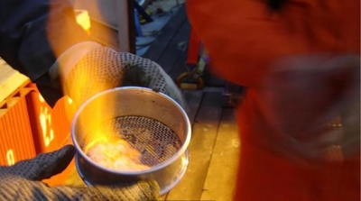 这一切都要归咎于物理学。甲烷水合物对压力和温度非常敏感,不能简单地捞起了事。它们通常形成于500米深的海底下方数百米处,那里的压强远高于地表,且温度接近零度。一旦离开这种环境,可燃冰就会迅速分解,根本来不及采集其中的甲烷。不过,我们还有别的方法来采集它。