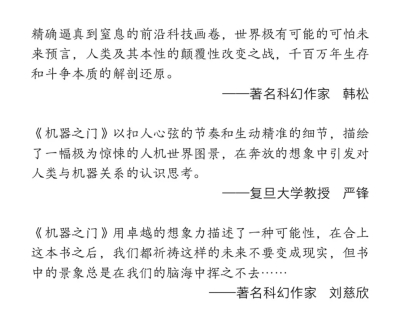 那么,作为全国最权威、最专业的图书榜单,本次的“中国好书”评委们又是怎么评价这本书的呢?《机器之门》的看点&推荐理由又是什么呢?