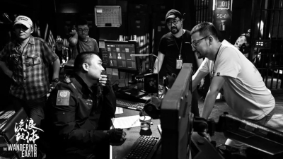 郭帆导演在拍摄中与演员沟通