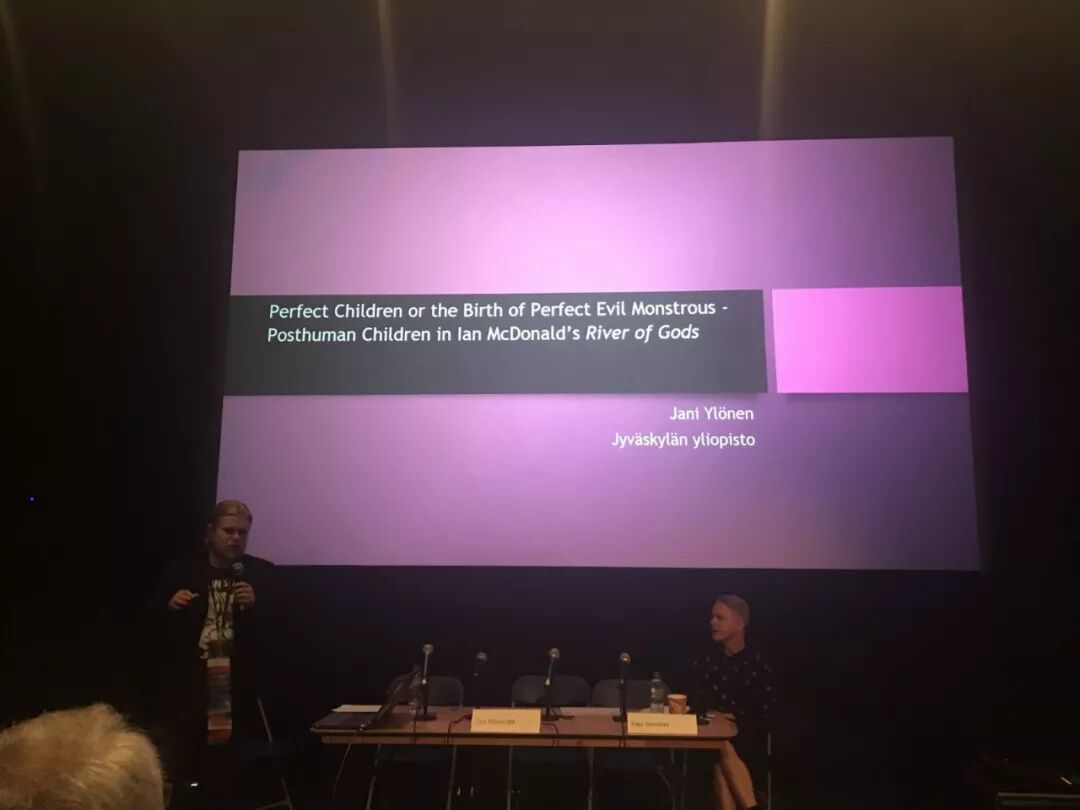 神话与恐怖”学术论坛的两位演讲人,赫尔辛基大学的Esko Suoranta讨论了“爱手艺”洛夫克拉夫特作品中的种族主义历史局限;学者Jani Ylonen则研究了英国科幻作家、雨果奖得主伊恩·麦克唐纳的《River of Gods》,这本背景设定于近未来印度的作品中,描述了人类可以通过技术“创造”完美小孩的过程。而这种“完美小孩”正式源于我们对文化和后代的焦虑心理。