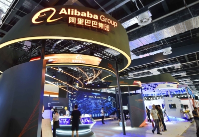 ▲阿里巴巴等具有前沿科技水平的世界著名企业展区展出了未来智能科技在社会生活中的应用。