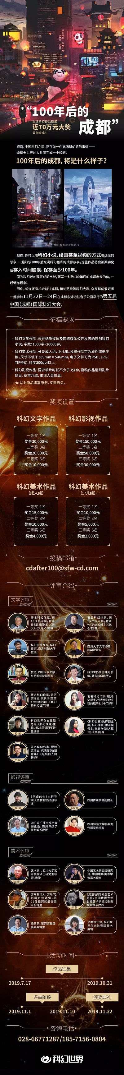 大会期间,“100年后的成都”将与一系列其他的重量级中国科幻奖项一起颁布。
