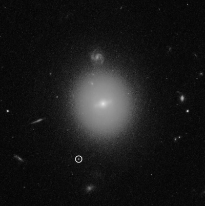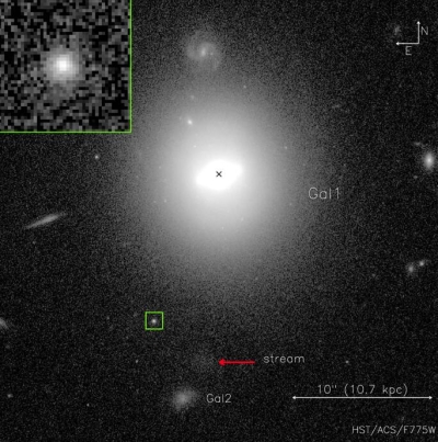 林博士和他的团队用哈勃太空望远镜和XMM-牛顿太空天文台对其进行进一步观测,他们利用X射线辐射追踪到一个远在银河系之外宽度约80光年的致密恒星结,位于一个名为Gal1的遥远星系的边缘。