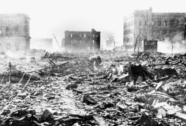 * 原子弹爆炸后的城市废墟。图源:美国新闻网