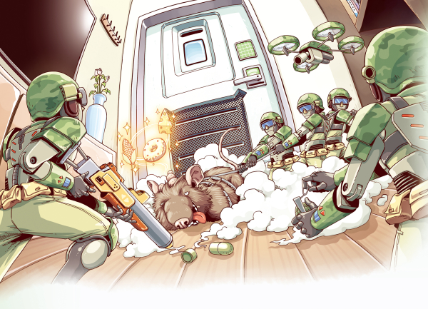 在连续击败企图入侵厨房的老鼠和野猫后,陆战队队长决定主动出兵侦查,以了解对面那家伙的动态。不想,派出去的侦查兵才刚刚开始行动,就遭到了炮击。这是怎么回事呢?