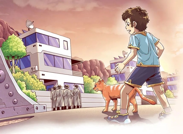 妈妈随星船出勤了,爸爸去地球参加一个重要的科研项目,留在火星陪安杰的,便只剩下火星机器猫阿喵。这天,安杰回家途中,阿喵挡住了他的脚步。在阿喵的提示下,安杰发现四个穿灰色大衣的陌生男人守在他家院子周围。情况有些不对,于是安杰派阿喵回去打探消息。从阿喵记录的情景以及收到报警后赶来的警官口中,安杰得知,爸爸被宇宙海盗抓走了……