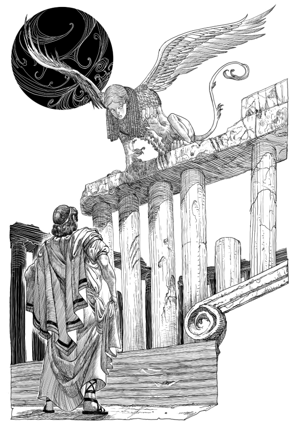 据阿波罗多罗斯称,斯芬克斯有女人的头、狮子的身和鹰的翅膀。其他同样可靠的权威人士称她的尾巴是一条蛇:一条毒蛇,和奇美拉一样。有时她的头是个男人,一个男性斯芬克斯。艺术家往往会自由发挥:猎豹的身体,名妓的胸部,家猫的尾巴。有时它甚至没有翅膀。许多斯芬克斯甚至不会飞;俄狄浦斯故事的某些版本的结尾,斯芬克斯是坠崖而亡。