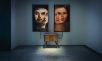 据 Artnet 报道,“路人记忆 1”由一个内置 AI 计算机“大脑”的木制餐具柜,和上方连接的两个屏幕组成。计算机通过实时工作,将一系列想象的男性和女性的扭曲面孔投射到屏幕上。