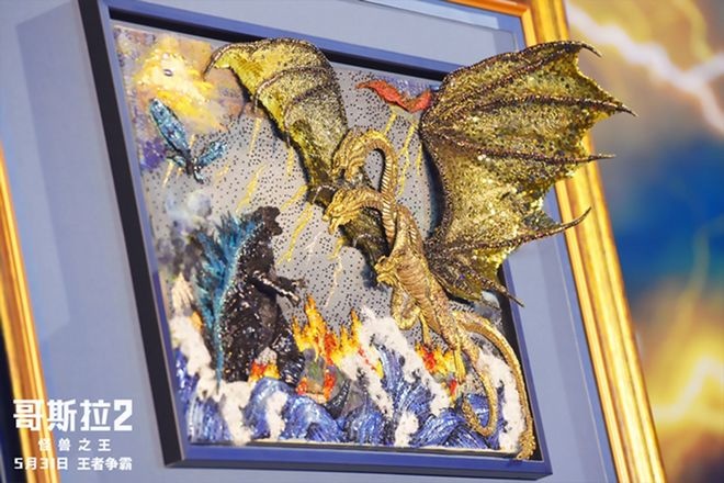 1905电影网讯 好莱坞科幻灾难动作巨制、“怪兽宇宙”系列电影第三部力作《哥斯拉2:怪兽之王》将于5月31日全国上映,日前在中国首映礼发布会上,导演迈克尔·道赫蒂,主演维拉·法梅加、米莉·博比·布朗和章子怡,现场收到一份别具匠心的精美礼物——中国风刺绣海报,5月17日片方发布制作特辑,震撼揭秘精美绝伦的“怪兽之王争霸图”诞生记。这版刺绣海报采用缎带、金箔、蚕丝线、水晶等117种材料,耗时856个小时制作完成,精湛绣功匠心独运再现怪兽界“四大天王”的震撼气势,完美还原哥斯拉原子吐息、基多拉引力光线必杀技大招。