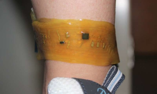 这种可穿戴的电子皮肤能够沿任何方向拉伸60%,在这片人造薄皮中注入了可完全回收的电路板,可以记录并掌握重要功能数据和锻炼目标。