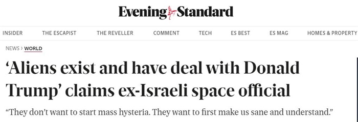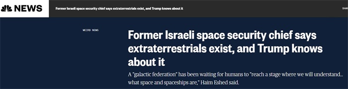 据报道,担任以色列太空安全项目负责人近30年的海姆·埃斯赫德(Haim Eshed)对以色列《新以色列日报》(Yediot Aharonot)表示,外星人已经在人类当中生活了很长时间,而且只与美国和以色列交流。