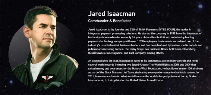 Isaacman是宾夕法尼亚州一家信用卡处理公司Shift4 Payments的负责人,他想要借助本次全平民太空旅行为孟菲斯的圣裘德儿童研究医院筹集资金。目标是为该医院筹集2亿美元,Isaacman捐助了其中的1亿,而自2月以来,独立捐助者已总共捐献了1300万美元。