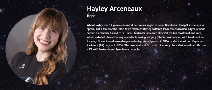 一个月前,现年29岁的Arceneaux于一个月前被任命为机组人员,是圣裘德医师的助手,曾在医院接受治疗,当时患有骨癌。她将成为太空中最年轻的美国人,也是第一个使用假肢旅行的美国人。