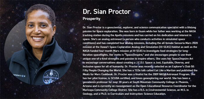 在本周二,最后两个席位的中奖者名单正式公布。其中一位是Proctor,现年51岁,是一位企业家、教育家,还是训练有素的飞行员,并且在太空探索界十分活跃。