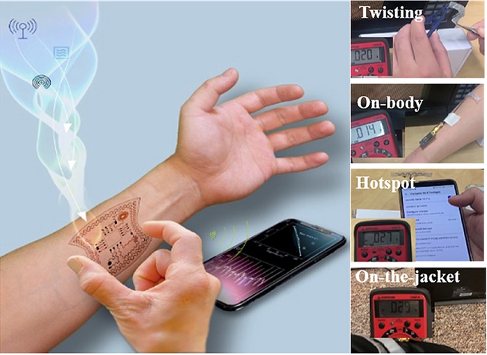 该整流天线可以将周围环境中的无线电波或电磁波转换成能量,以为设备上的传感模块供电,这些模块可以跟踪温度,水合作用和脉冲氧含量。与其他来源相比,产生的能量更少,但该系统的显着的优势它可以连续发电。