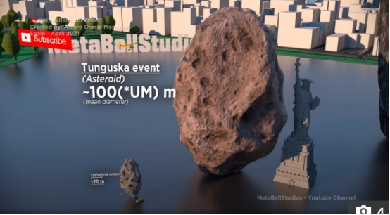 通古斯事件的肇事者,1908年在西伯利亚上空的爆炸,威力相当于185枚广岛炸弹的那颗小行星,其与自由女神像的大小对比如下: