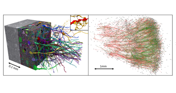 研究人员从取自人类大脑皮层颞叶的样本开始,其尺寸仅为1mm。为了视觉清晰,将其染色,涂上树脂以保存它,然后切成约 5,300 片,每片约 30 纳米 (nm) 厚。然后使用扫描电子显微镜对这些图像进行成像,分辨率低至 4 nm。这创造了 2.25 亿张二维图像,然后将它们重新拼接成一个3D体积。